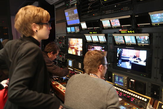 AMP VISUAL TV était mobilisé autour du Téléthon 2012 installé à la Plaine-Saint-Denis. Nous accueillions en effet le plateau principal de France 2, de France 3 et celui de France 4 aux Studios 107. Nous étions également en charge du plateau mobile en bus qui sillonnait les rues de Paris grâce à un impressionnant dispositif HF. Le car E assurait en outre le live de France Ô au CentQuatre et nous étions en duplex en Corse avec le car H.